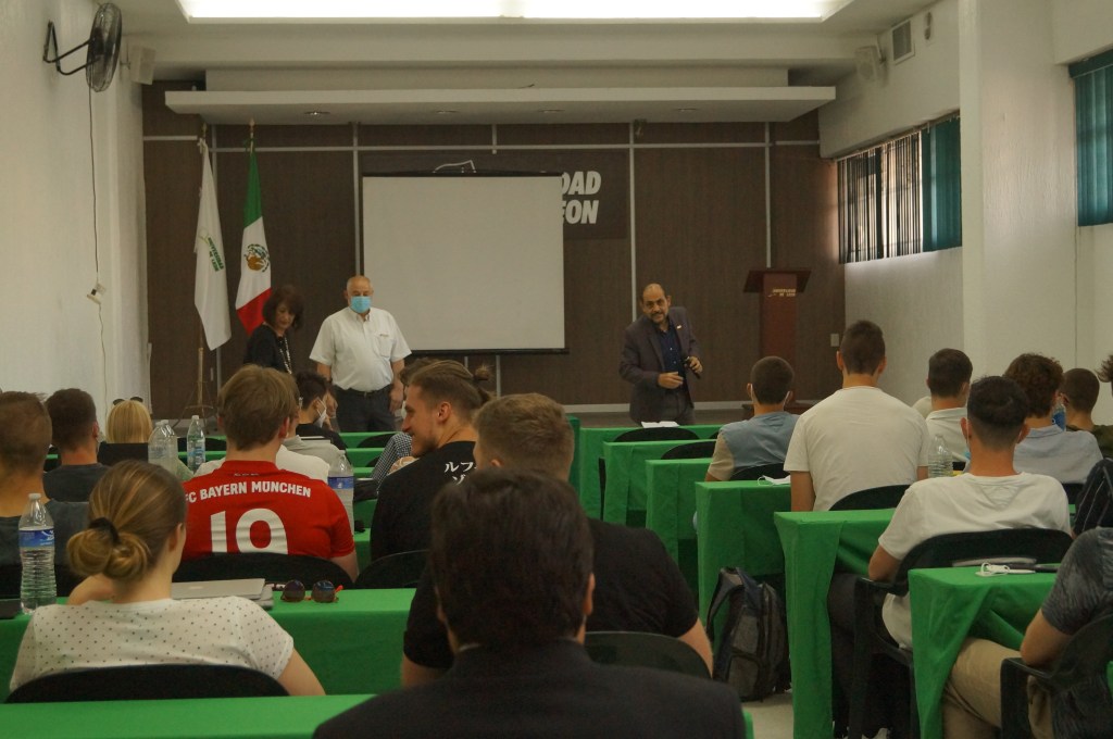 El lunes 23 de mayo a las 8 de la mañana empezaron a llegar los alemanes a las instalaciones de la universidad de león plantel paraísos donde se les haría un evento de bienvenida organizado por la licenciada Angélica Chávez, quien es encargada de organizar los intercambios entre la UDL y otras universidades de diferentes países del mundo. Al concluir la bienvenida se les impartieron clases de comercio internacional en México, comunicación internacional y turismo en León. Al terminar esas clases partieron hacia las casas de compañeros de la UDL.
